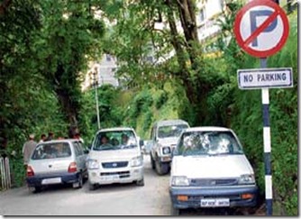 As is clearly seen in the picture, that people now have become ignorant. This picture is 4 years old but the scenario is still the same. People park their vehicles haphazardly, anywhere they want.